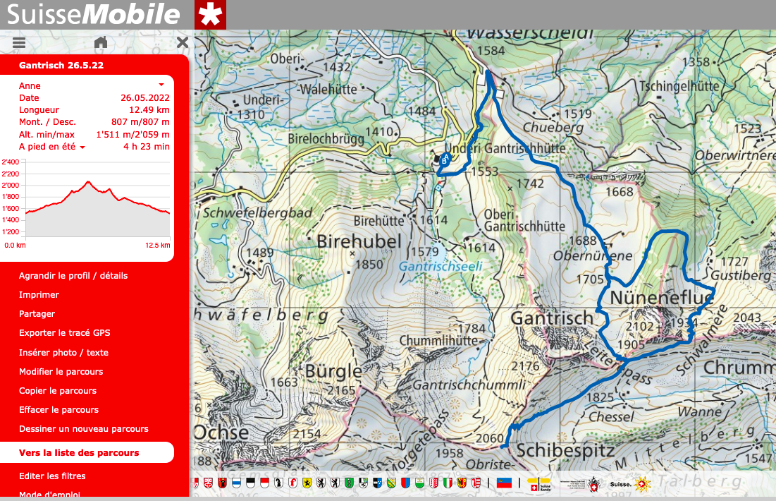 On va monter le col à gauche du Gantrisch, le Leiterpass, passer derrière la montagne pour remonter au Schibespitz d'ou l'on a une vue sur la montée au Gantrisch, 2176m. pour le casse croute du midi avec le fromage acheté dans une petite boite-chalet au Leiterpass.