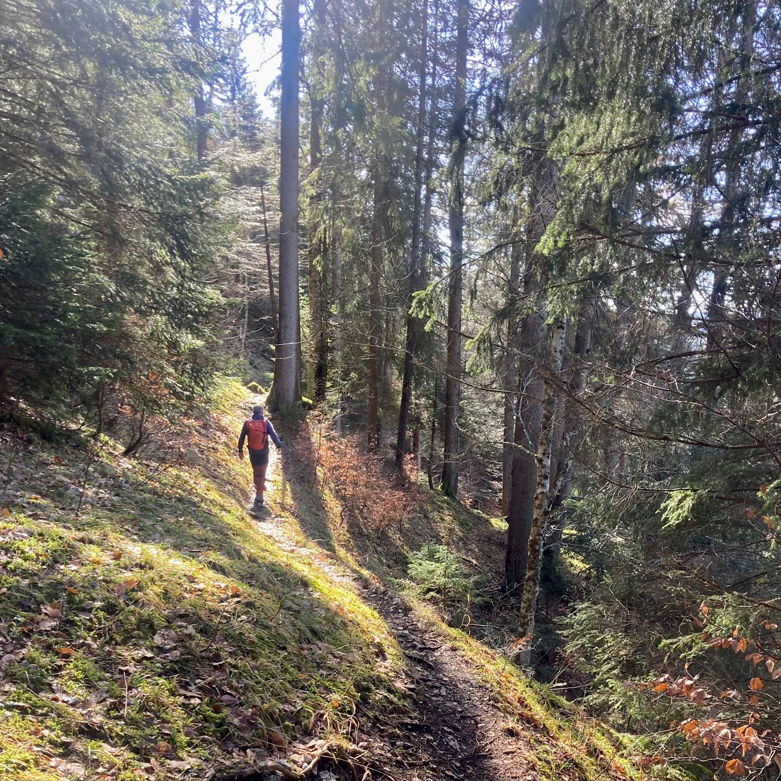 Cette fois, départ de la Gittaz-Dessus, presque en dessous des éoliennes fraichement posées sur le Mont des Cerfs . Le sentier, encore détrempé des récentes pluies est plutôt glissant et grimpe assez vite en direction des Aiguilles. Le soleil joue à cache-cache avec les arbres et les nuages. Pourvu que le brouillard qui est sur le plateau ne gagne pas les sommets...